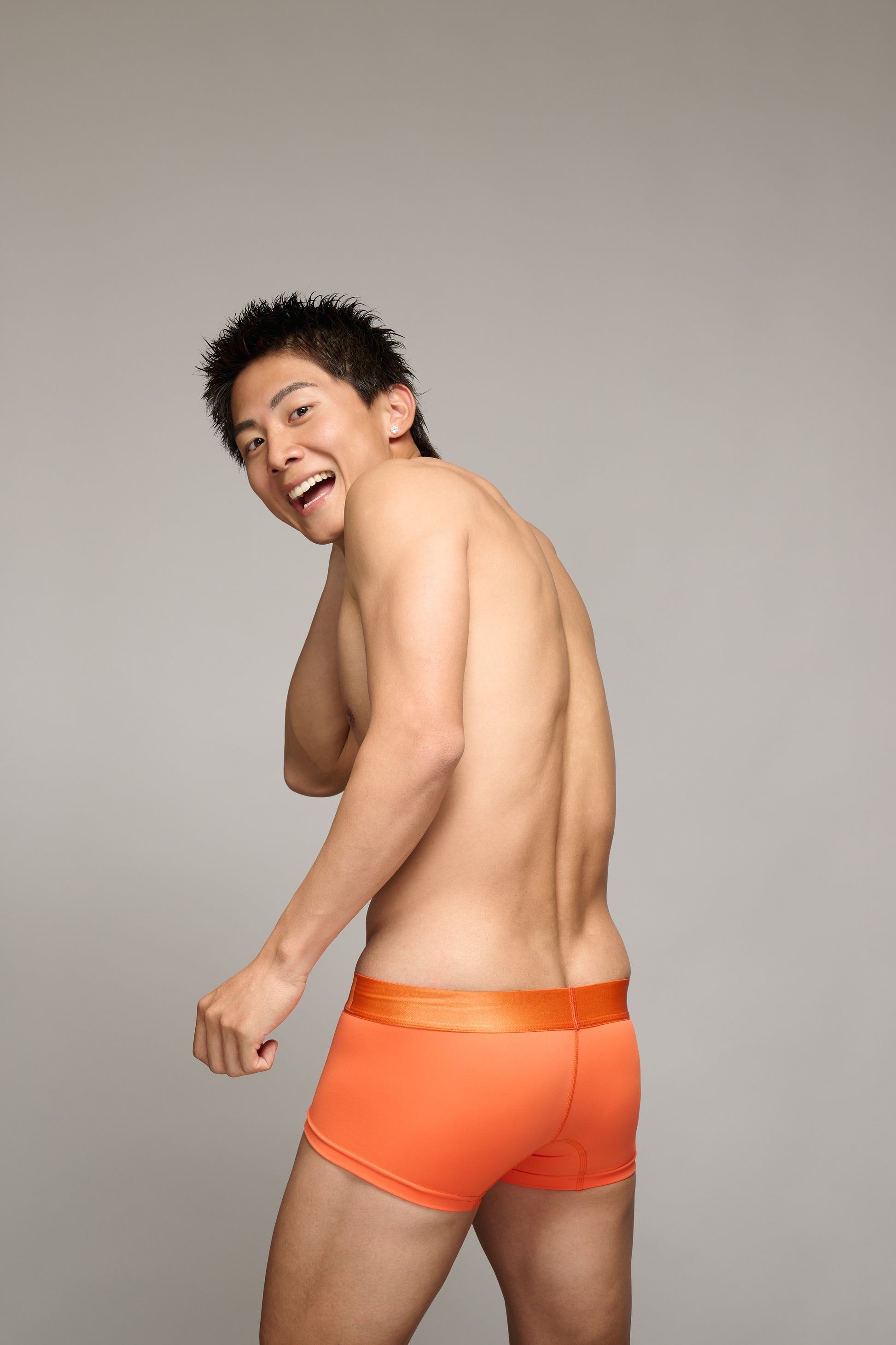 サラサラしっとりとした生地にはストレッチ素材が使用されており、シルエットには男性らしさを追求しています。